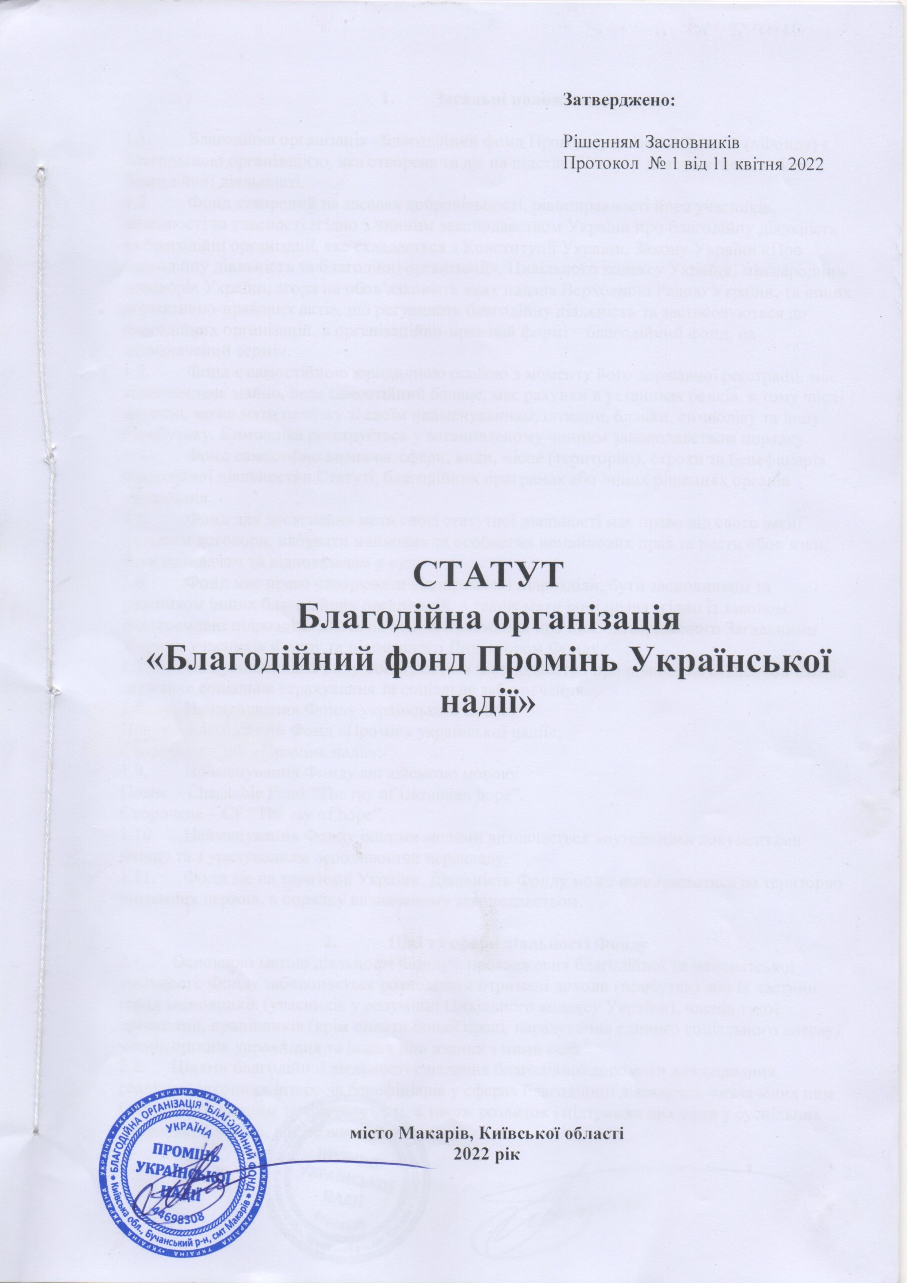 Цілями благодійної діяльності є надання благодійноï допомоги для сприяння реалізації законних інтересів бенефіціарів у сферах благодійної діяльності, визначених цим Статутом та чинним законодавством, а також розвиток і підтримка цих сфер у суспільних інтересах. Зокрема, але не виключно.