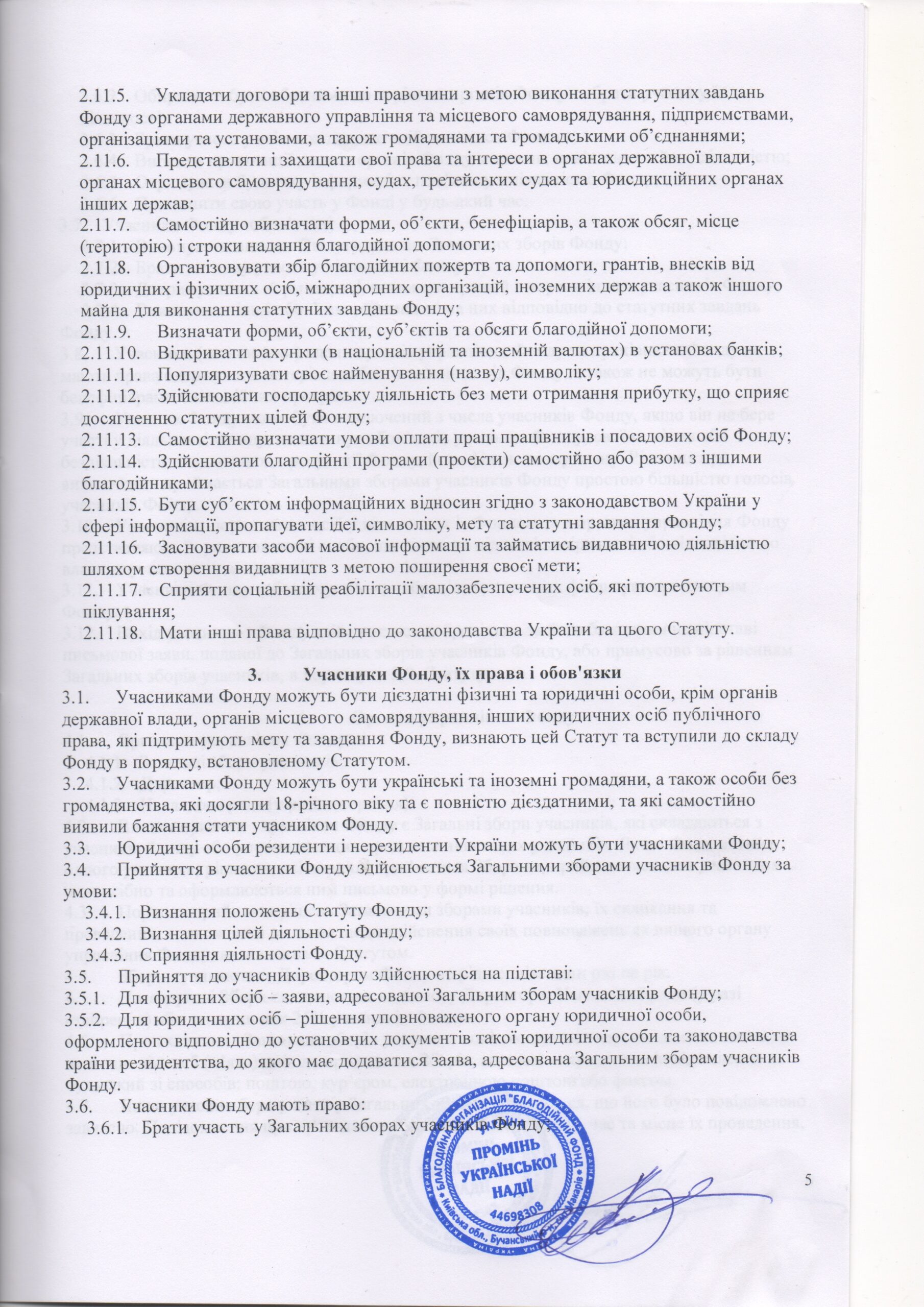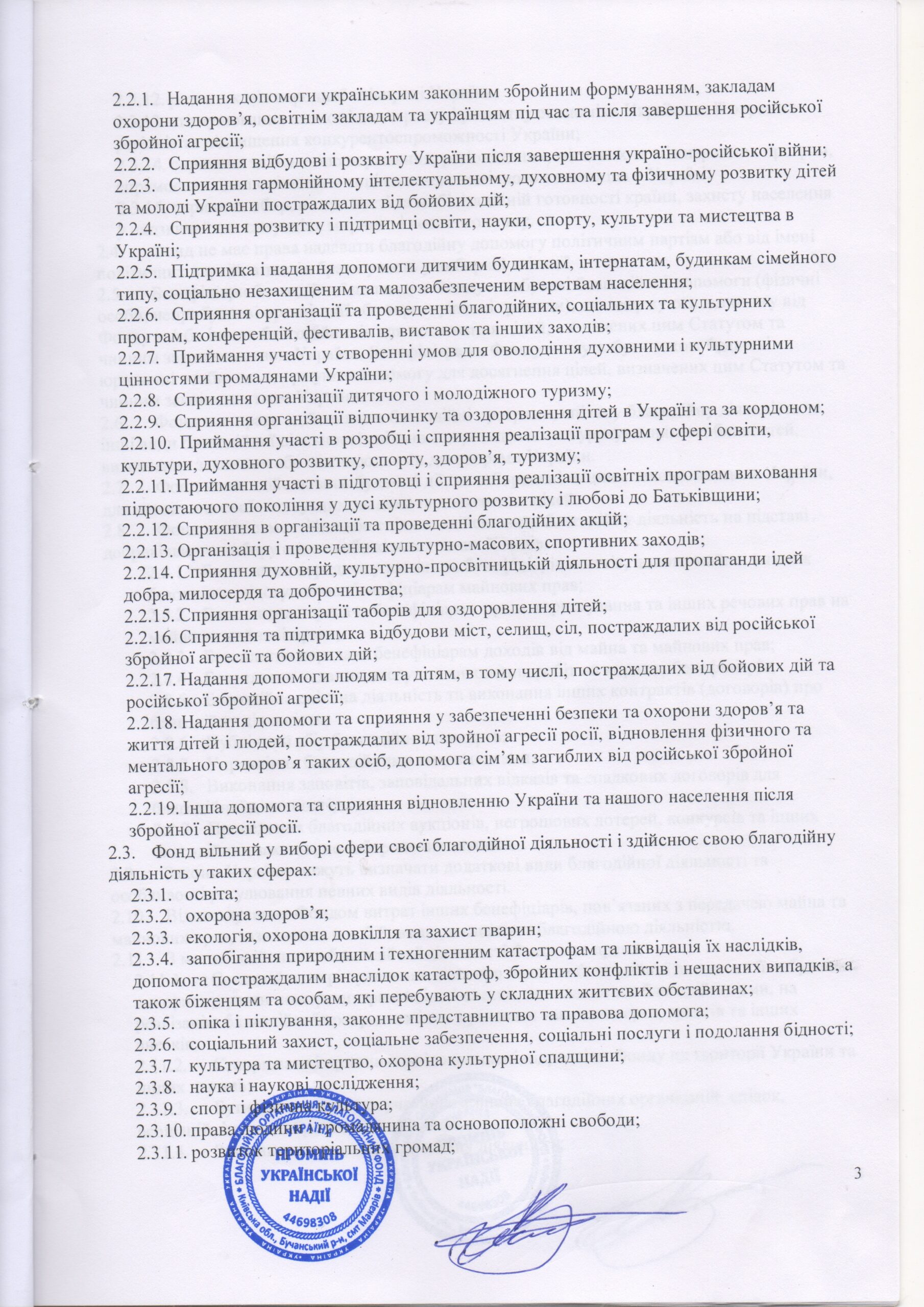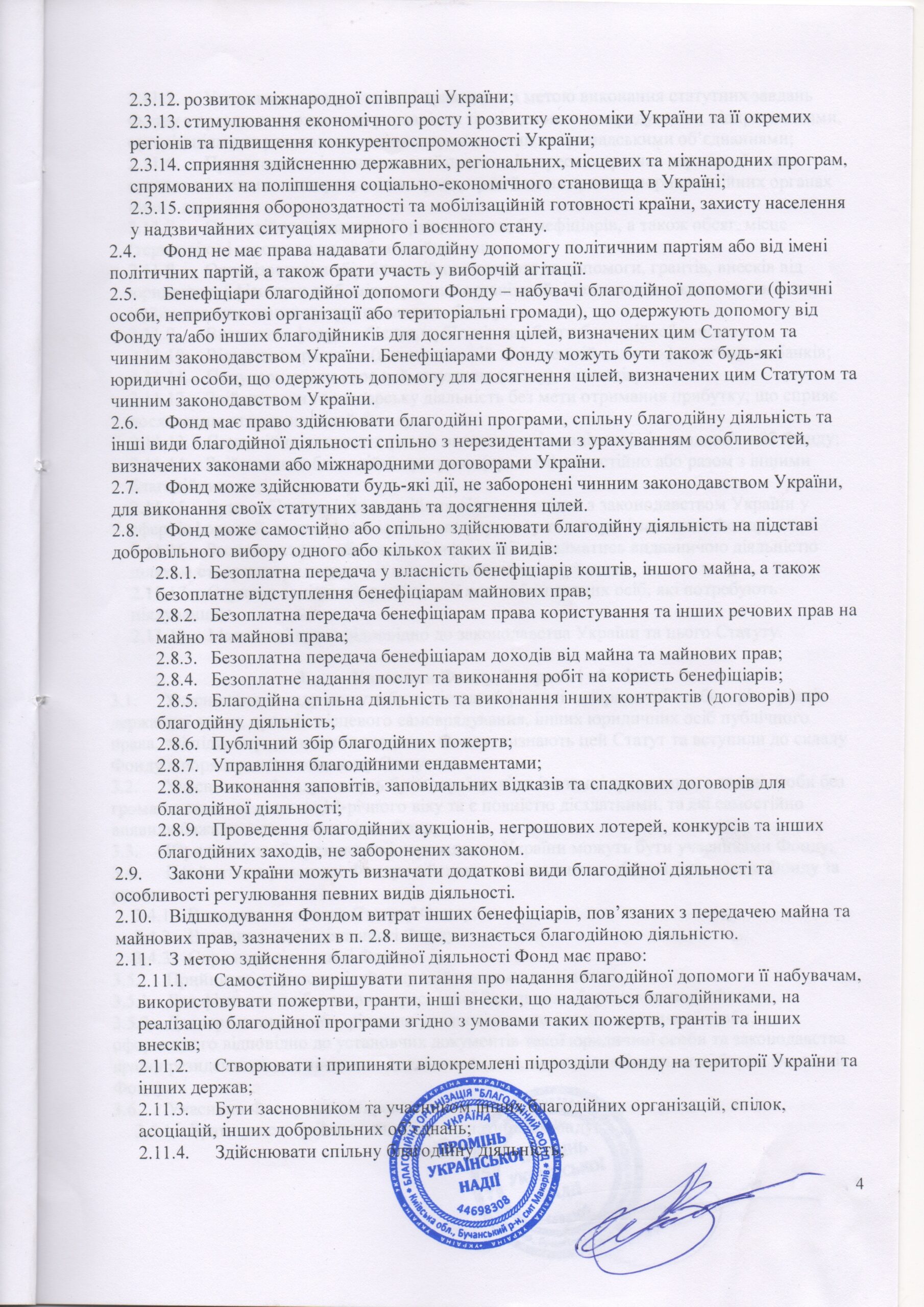 Основною метою діяльності Фонду є провадження благодійної та меценатської діяльності. Фонду забороняється розподіляти отримані доходи (прибутки) або їх частини серед засновників (учасників у розумінні Цивільного кодексу України), членів такої організації, працівників (крім оплати ïхньої праці, нарахування єдиного соціального внеску), членів органів управління та інших вязаних з ними осіб.