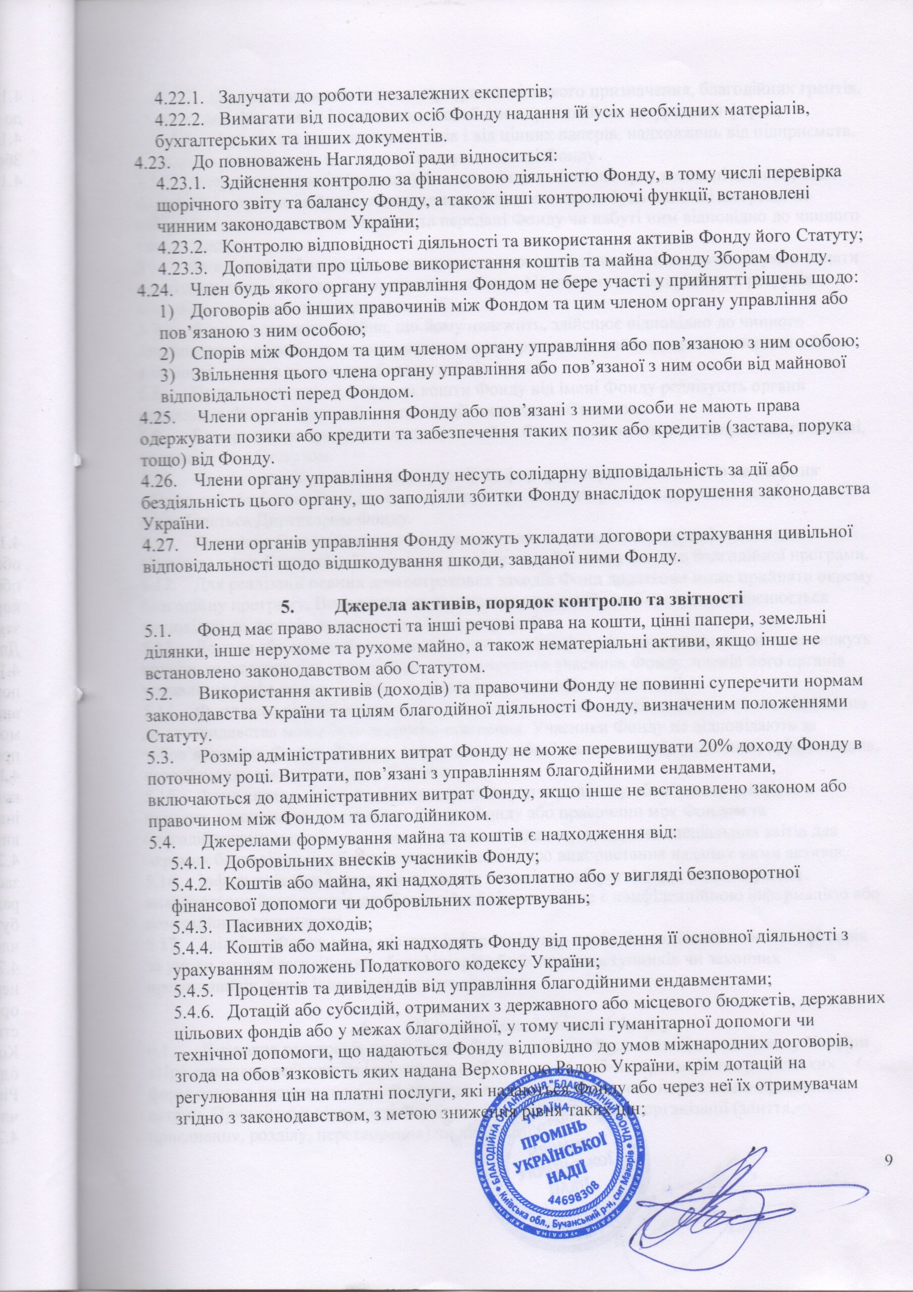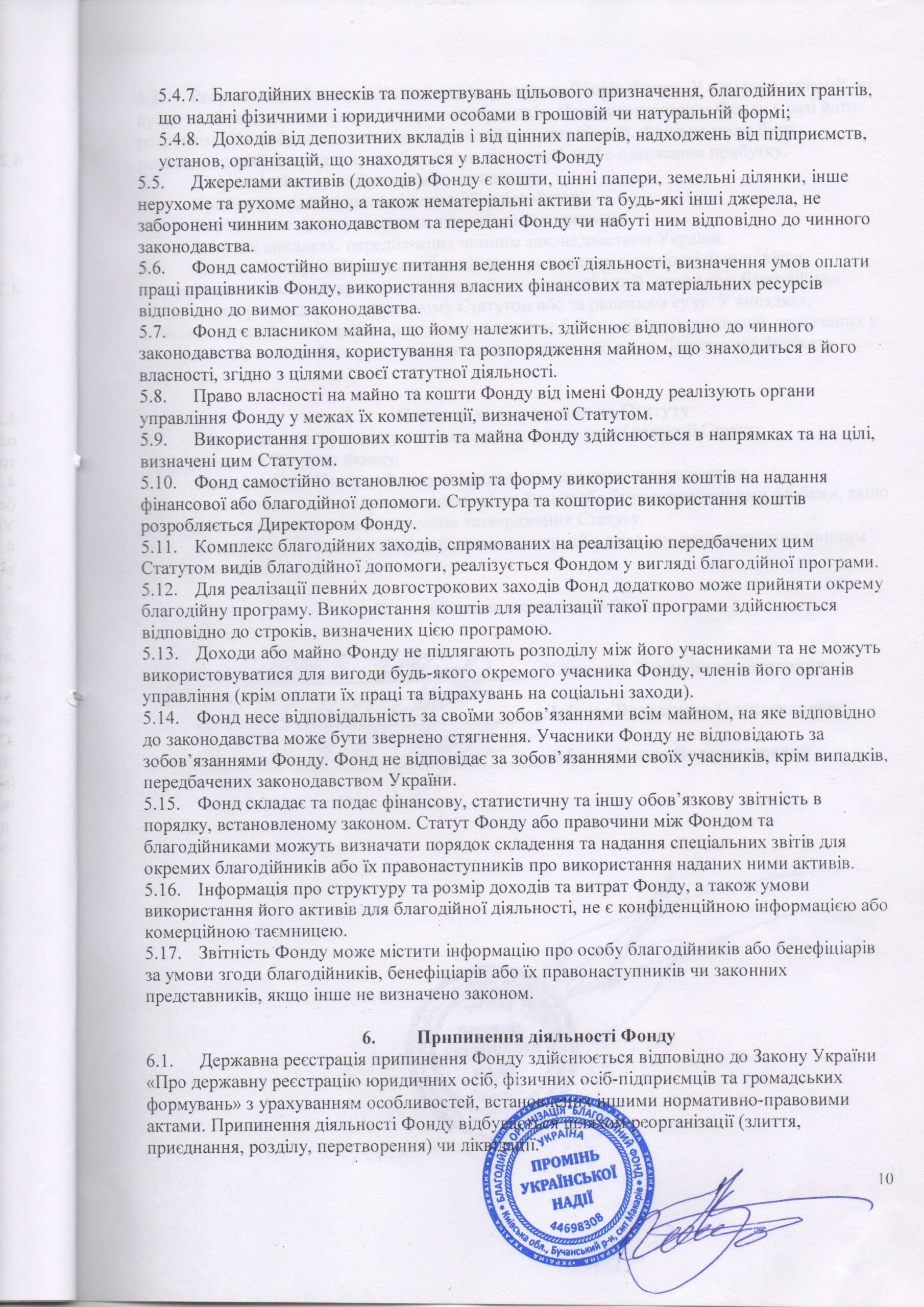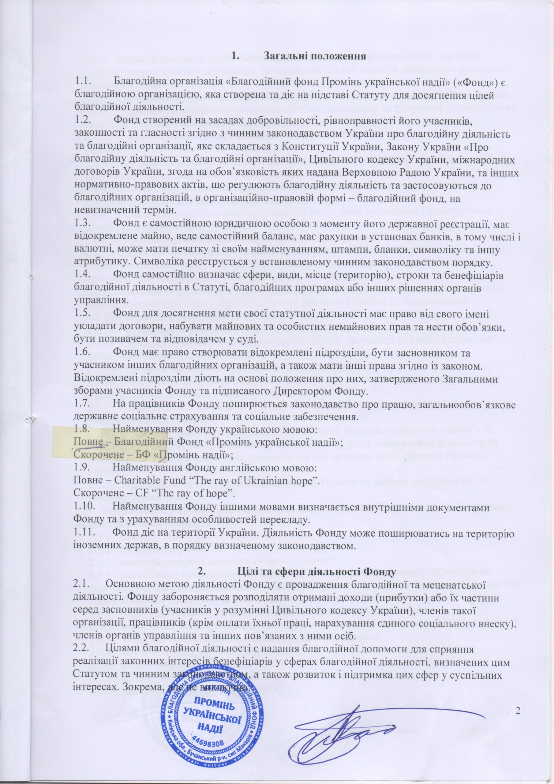 Основною метою діяльності Фонду є провадження благодійної та меценатської діяльності. Фонду забороняється розподіляти отримані доходи (прибутки) або їх частини серед засновників (учасників у розумінні Цивільного кодексу України), членів такої організації, працівників (крім оплати ïхньої праці, нарахування єдиного соціального внеску), членів органів управління та інших вязаних з ними осіб.